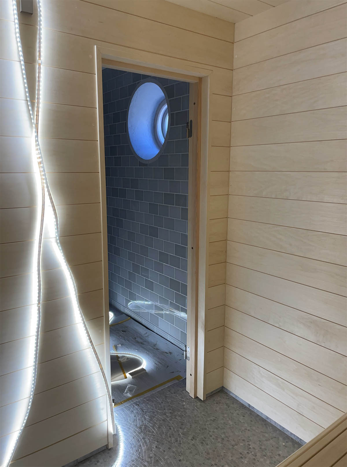 • Bastubygge med formade lavar i asp