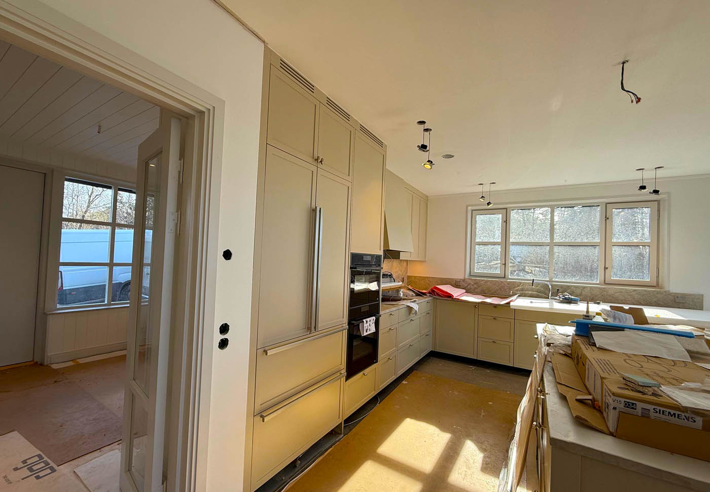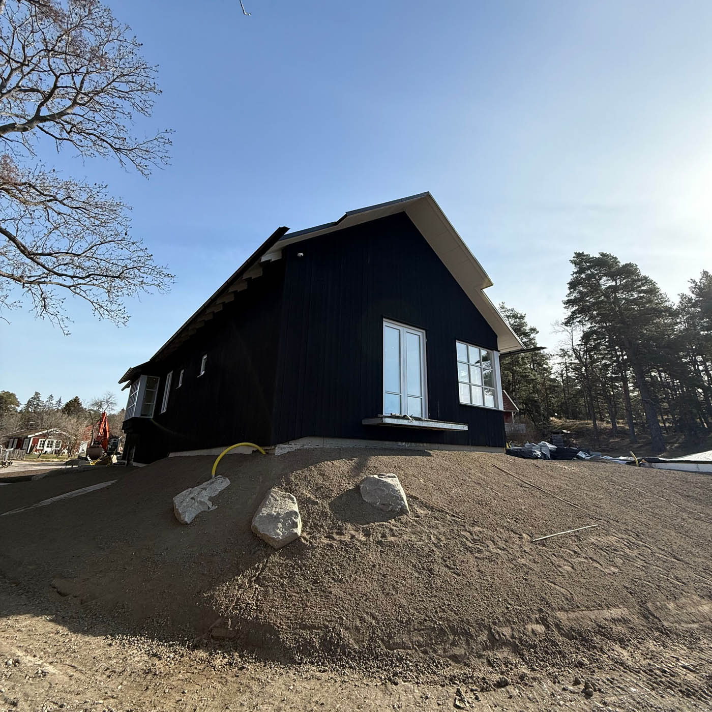 Vi inledde projektet med att demontera och transportera bort det befintliga kataloghuset. Därefter genomförde vi sprängning och grundläggning innan vi påbörjade byggnationen med lösvirke.